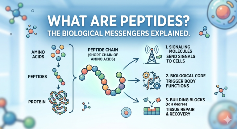 Think of peptides as biological software code. They don’t necessarily do the heavy lifting themselves; instead, they act as signaling molecules that tell your body to perform specific functions.