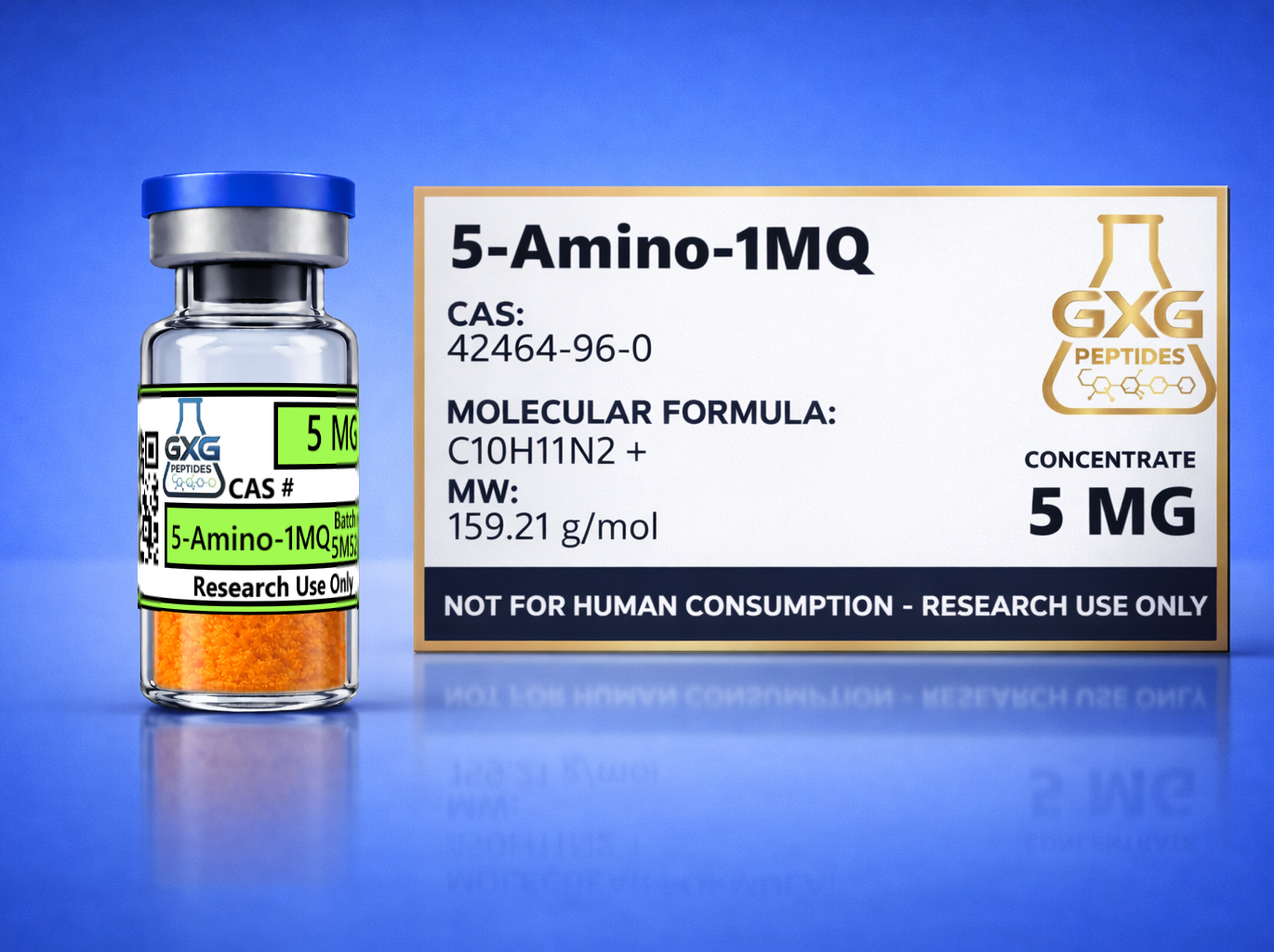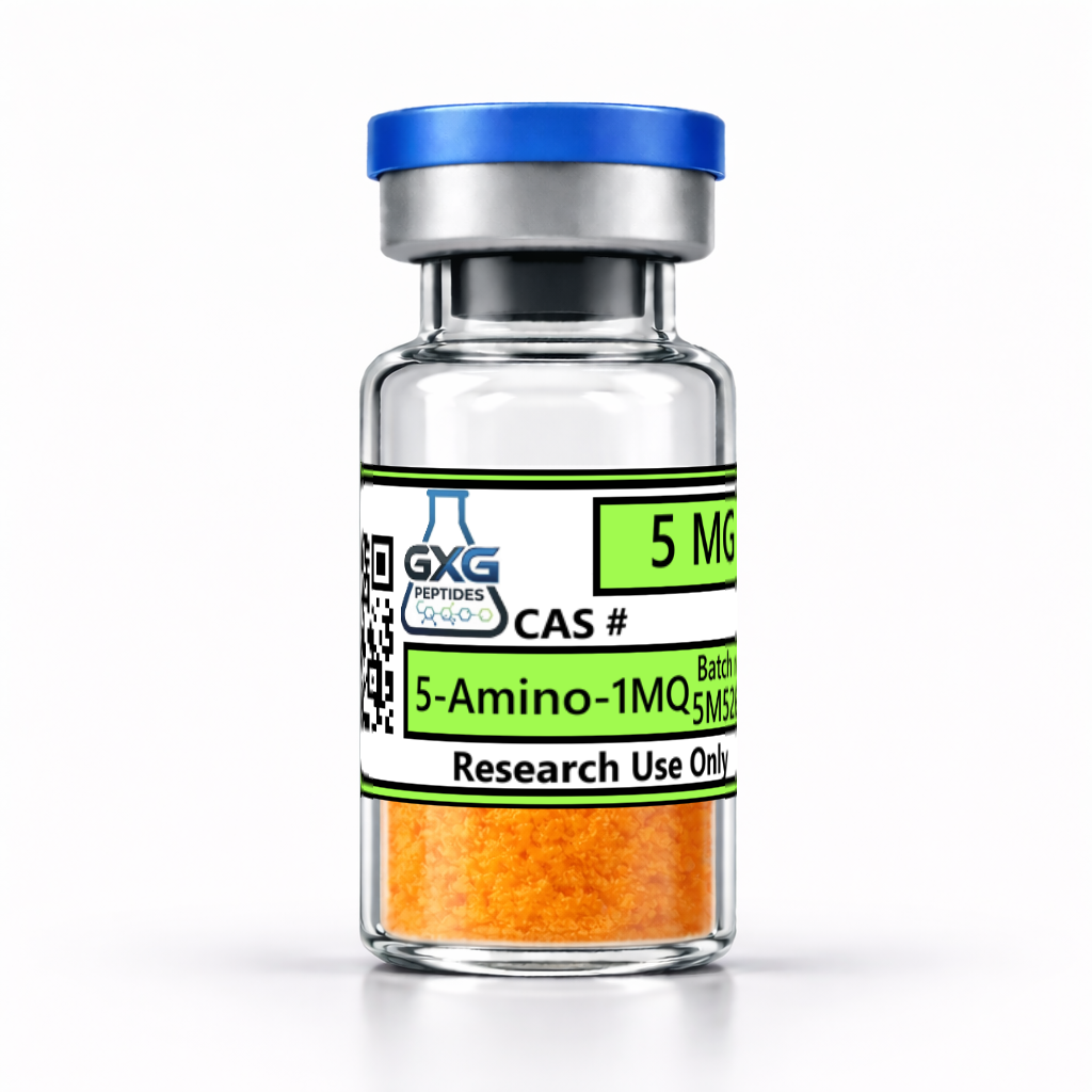 GXG Peptides manufactures 5-Amino-1MQ under stringent quality controls with verified purity and consistency to support reproducible laboratory outcomes. Each vial is prepared for precise measurement and reliable handling in professional research environments.