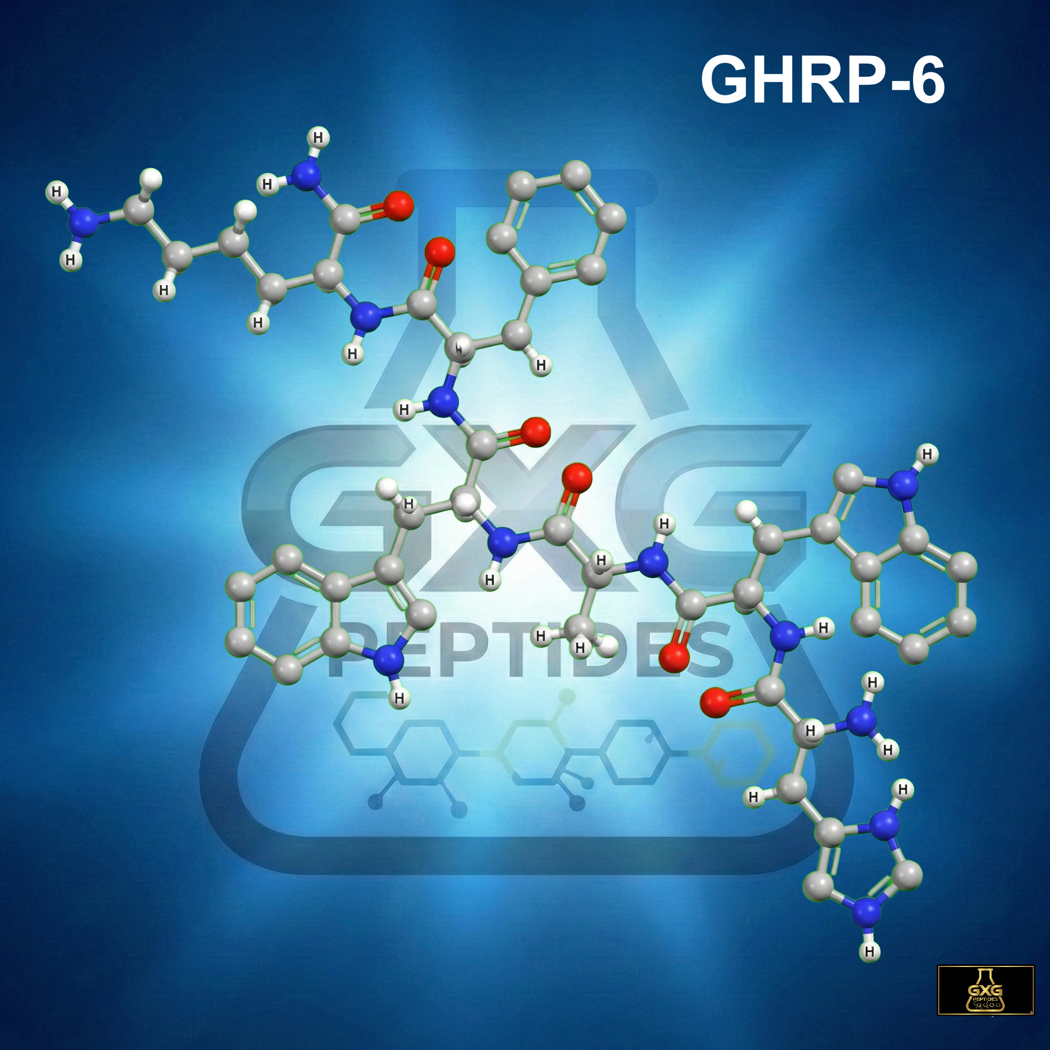 GHRP-6 (Growth Hormone Releasing Peptide-6) is a synthetic hexapeptide widely studied for its ability to stimulate growth hormone release through ghrelin receptor activation. As one of the earliest and most well-documented compounds in the GHRP class, it remains a cornerstone in research exploring anabolic signaling, recovery processes, sleep regulation, and age-related hormonal decline. GXG Peptides offers GHRP-6 as a high-purity research material for laboratory investigations into performance biology and longevity science.
