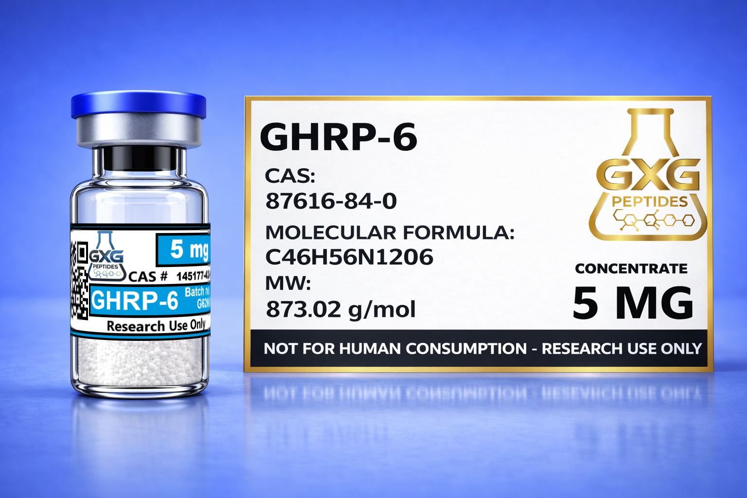 GXG Peptides manufactures GHRP-6 under stringent quality standards with verified purity and consistency to ensure dependable results in professional research environments. Each vial is prepared for precise handling and accurate measurement.