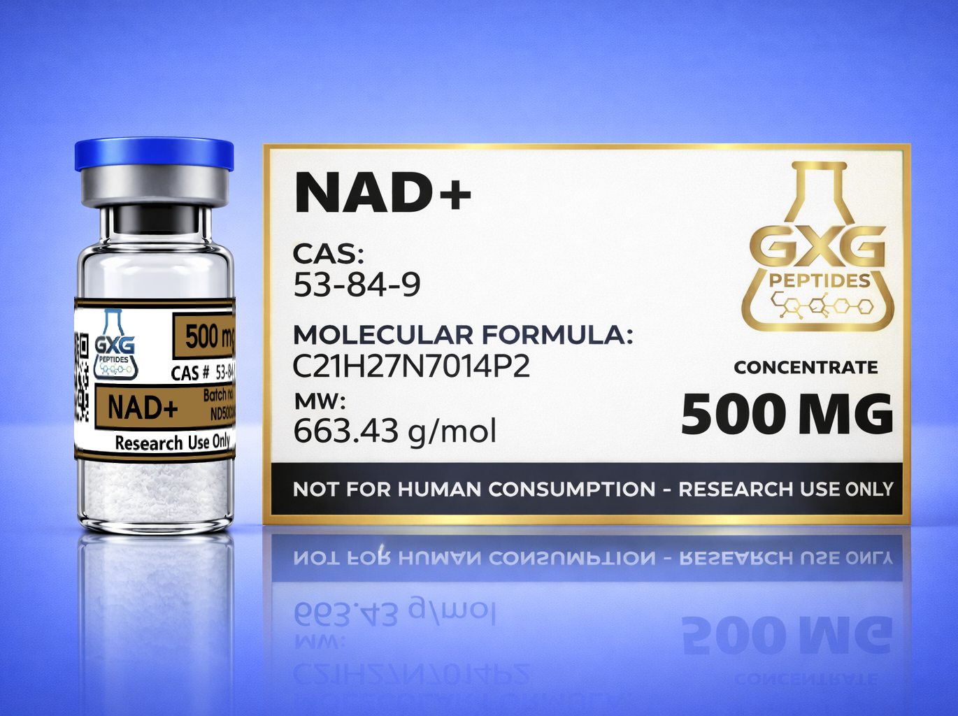 GXG Peptides manufactures NAD+ under strict quality standards with verified purity and consistency to support reliable laboratory outcomes. Each vial is designed for precise measurement and professional handling in controlled research environments.